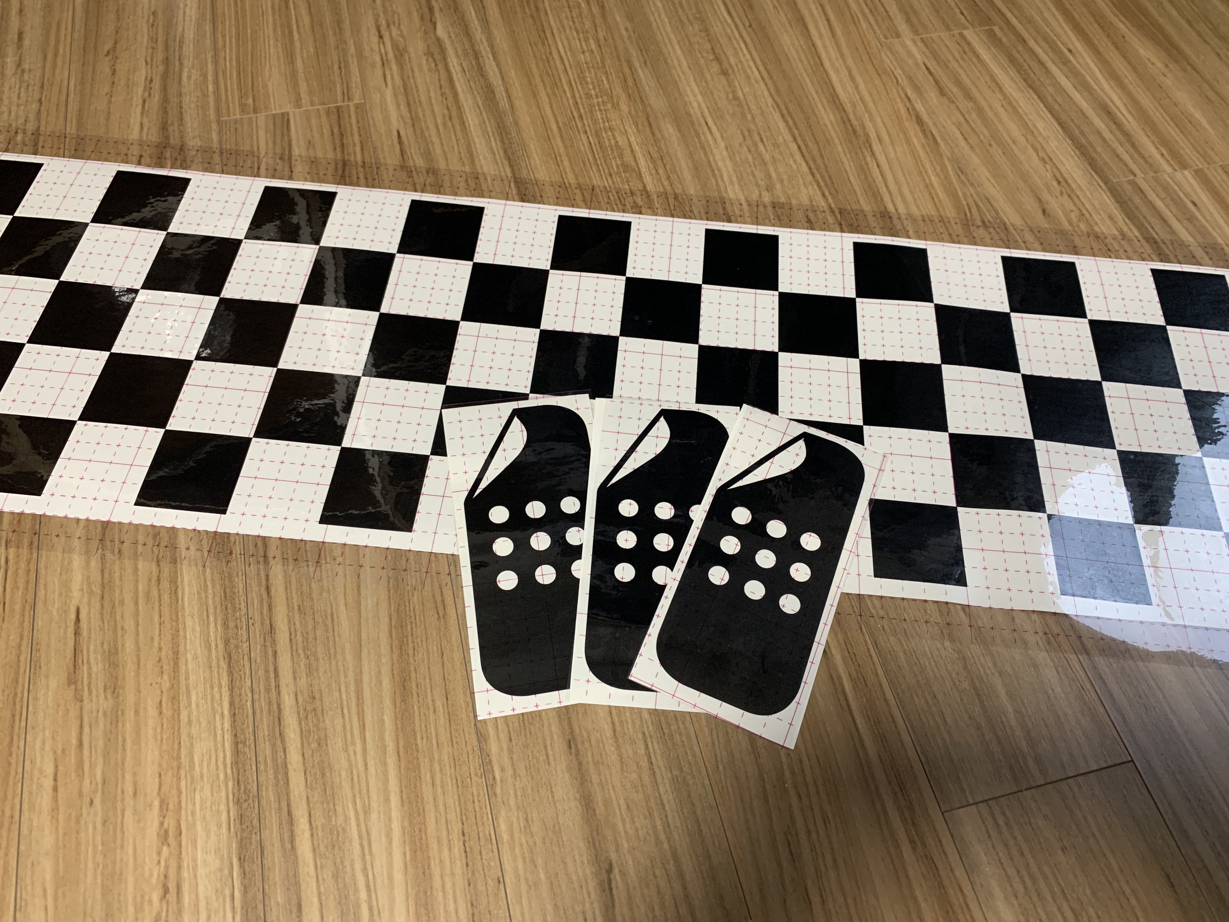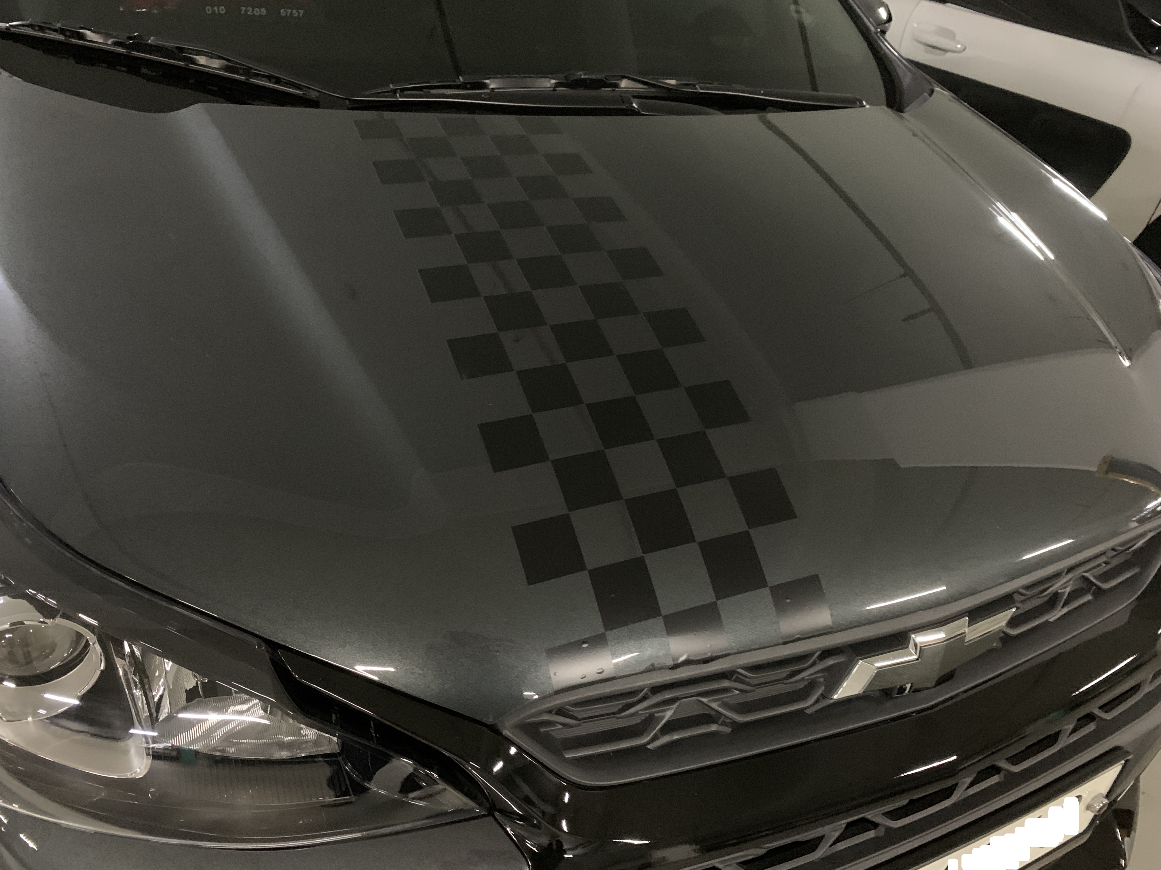 그리고 랩핑을 보류하고 선택한 스티커들입니다. 본넷에 포인트 체크무늬 스티커와 흠집을 가려줄 반창고 포인트 스티커입니다. 작업은 쉬웠어요. 잘 붙이기가 어려웠죠. 결국 본넷 스티커는 기포가 덕지덕지ㅠㅠ 다음에 위치 바꾸면서 다시 붙여보려 합니다.