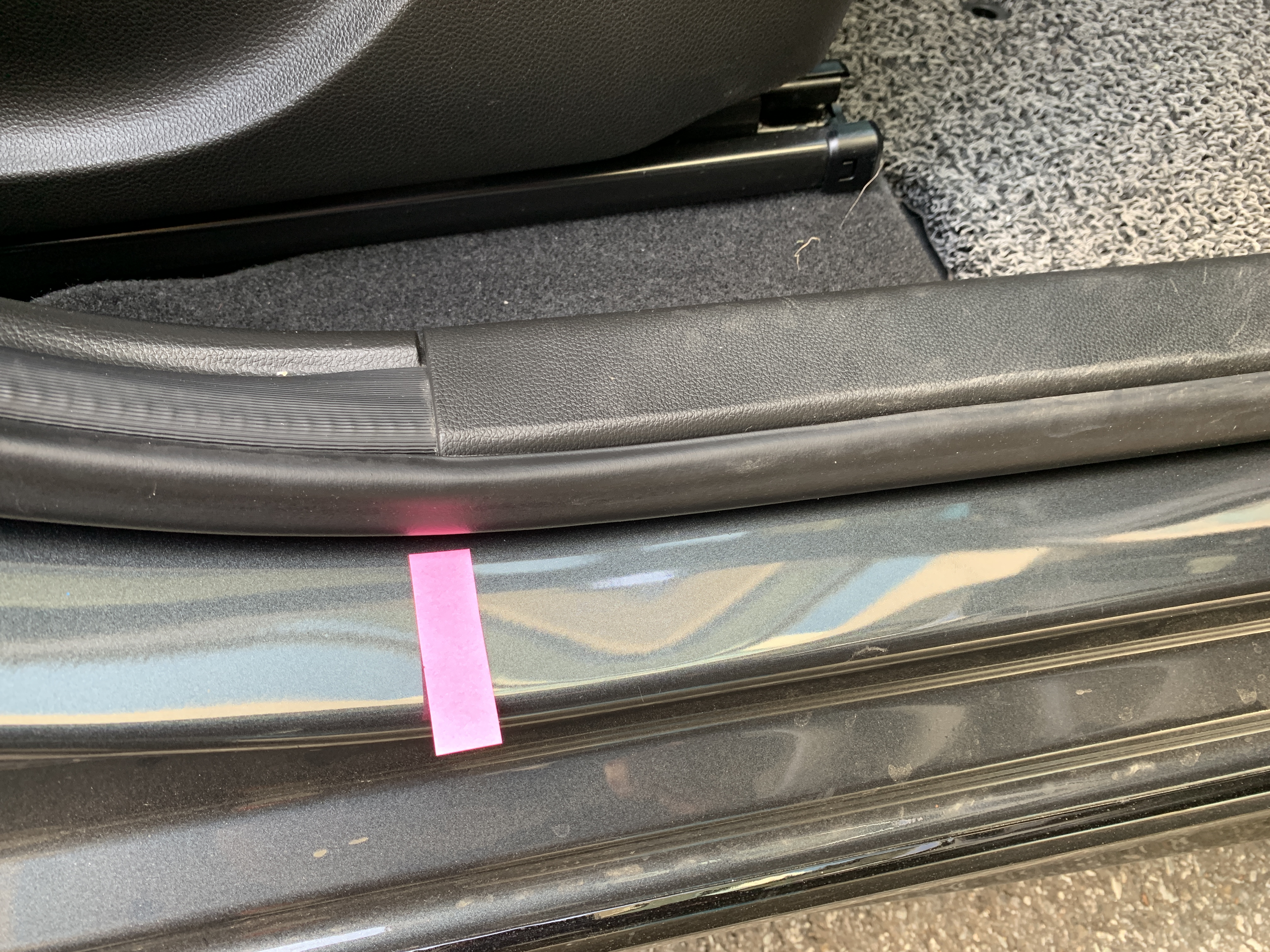 마지막은 실플레이트입니다. 주 기능은 승하차시 보호를 위한 건데요. 그쪽을 밟는 경우가 많아서 구입하게 됐습니다. 조금 더 높은 비율로 감성을 더한 거라고 보긴 봐야죠 ㅎㅎ 부착은 아주 간단합니다. 설명서에 나온 대로 위치를 잡고 부착하면 끝이에요. 20도 미만 기온에서는 드라이기 등으로 부착면을 가열하라고 나와 있습니다. 전 실플레이트 부착면에도 드라이기로 가열 후 접착력을 올렸습니다. 보호 면에서도 기대를 하며, 디자인적으로 포인트가 생겼습니다.