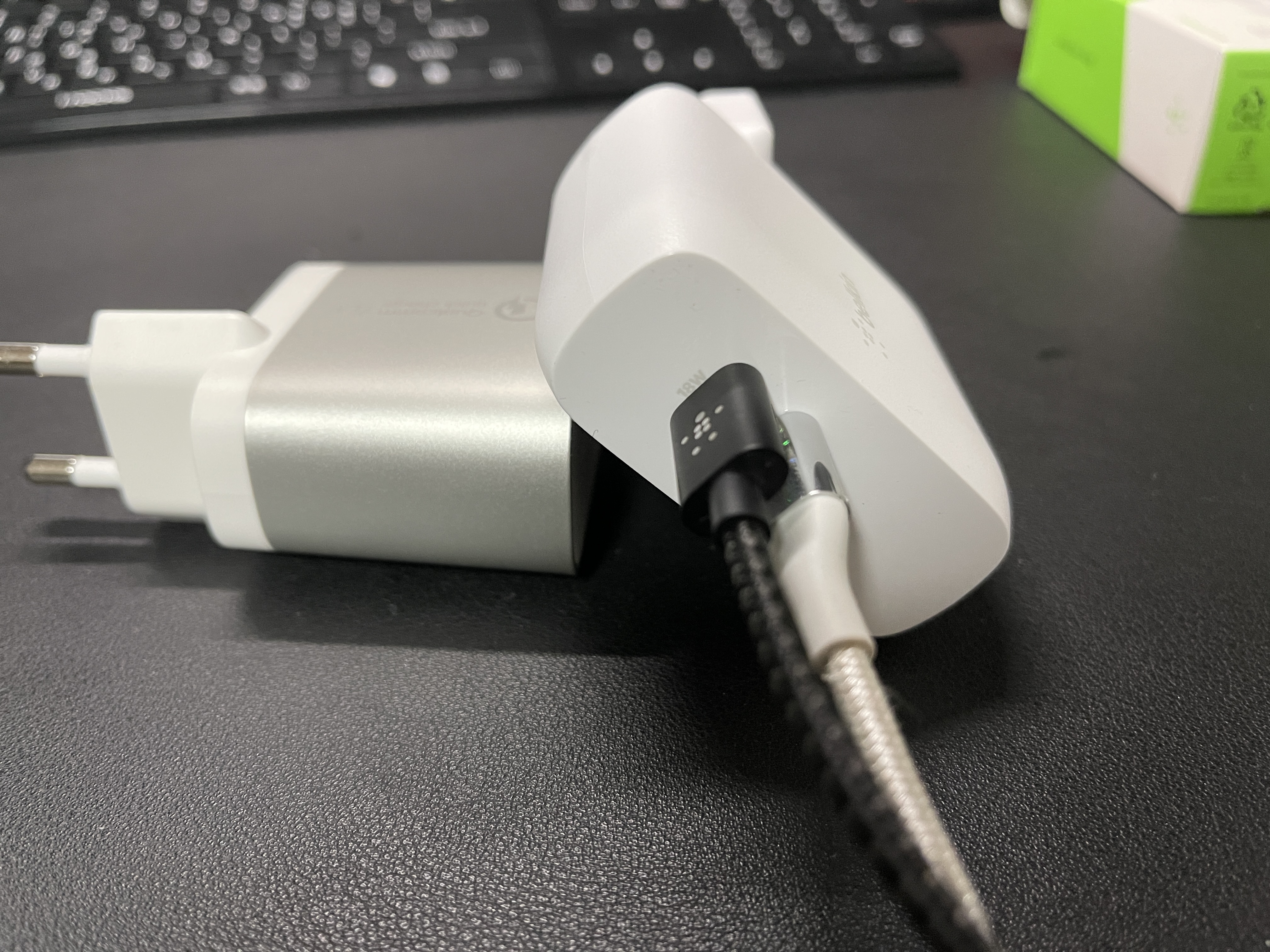 앞서 언급했듯이 충전 관련해서는 벨킨 제품만 사용하고 있습니다. 기존에 사용하던 어댑터는 27W용이었는데요. 각각 아이패드와 아이폰용으로 두 개를 사용하고 있었어요. 이번 제품은 최대 68W까지 지원하면서... 태블릿 뿐만 아니라, PC 충전도 가능합니다.