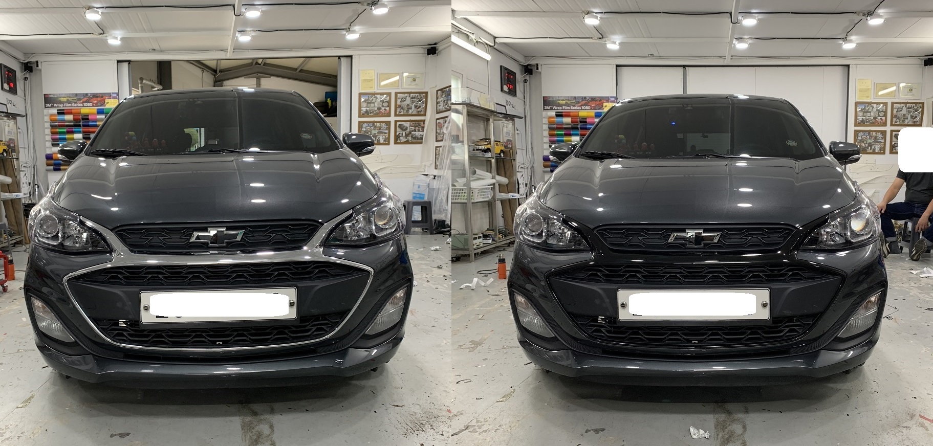 기본 그레이 색상에 블랙 포인트를 하나씩 주기 시작했어요. 위 사진 순서대로 보면 우선 크롬 죽이기를 했습니다. 전면 수염부와 윈도우몰딩, 손잡이까지입니다. 크롬을 싫어하는 건 아닌데요. 크롬이냐 블랙이냐에 따라 이미지가 너무 달라서... 만족하는 선택이었습니다. ㅎㅎ
