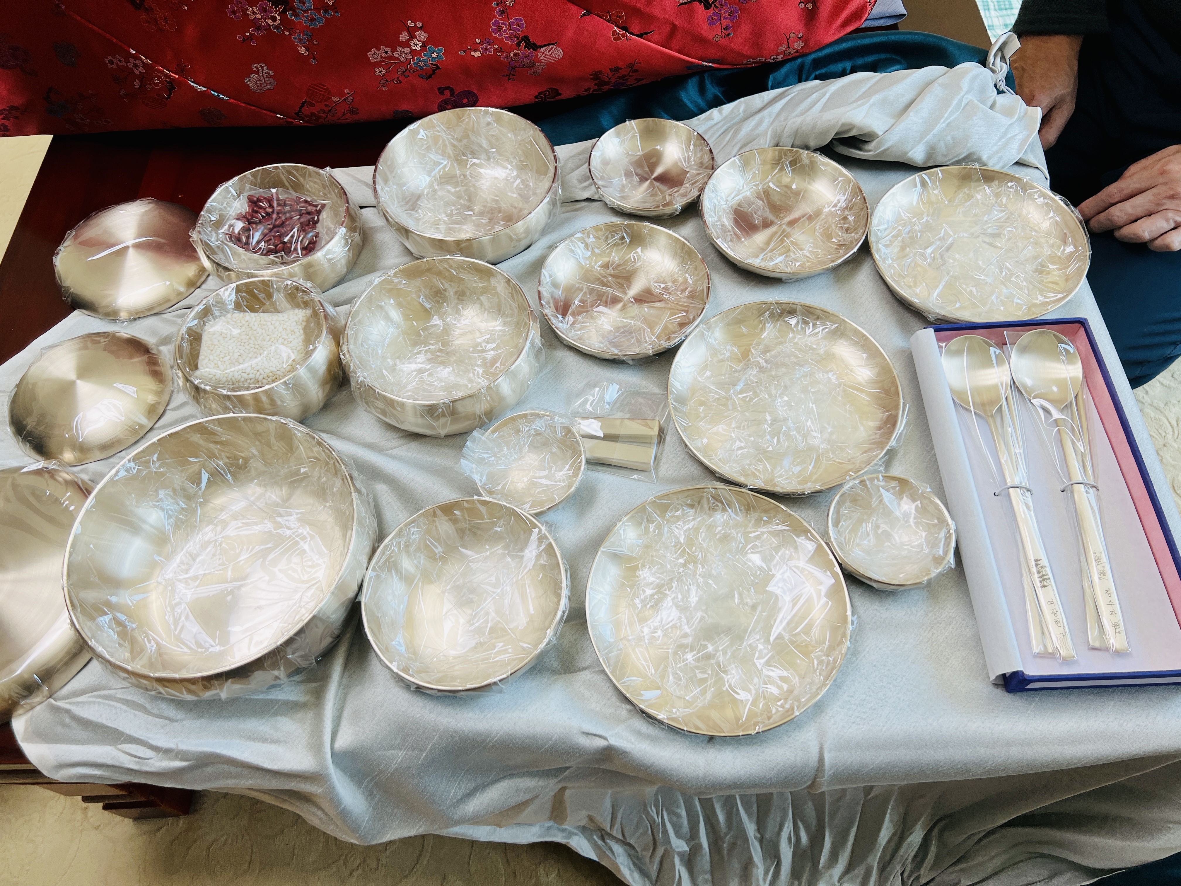 신부 측에서 신랑 측에 보낸 예단입니다. 방짜 세트와 신랑 부모님 이불이에요. 봉채비를 제외 예단비를 포함해서 대략 일천만 원이 소요되었습니다.(신랑 예물 반지, 결혼식 예복 포함) 이 부분은 사실 장모님께 정확히 물어볼 수가 없었어요^^; 대략 추산 가격입니다. 더불어 신혼집 이불 세트도 구입하였습니다.
