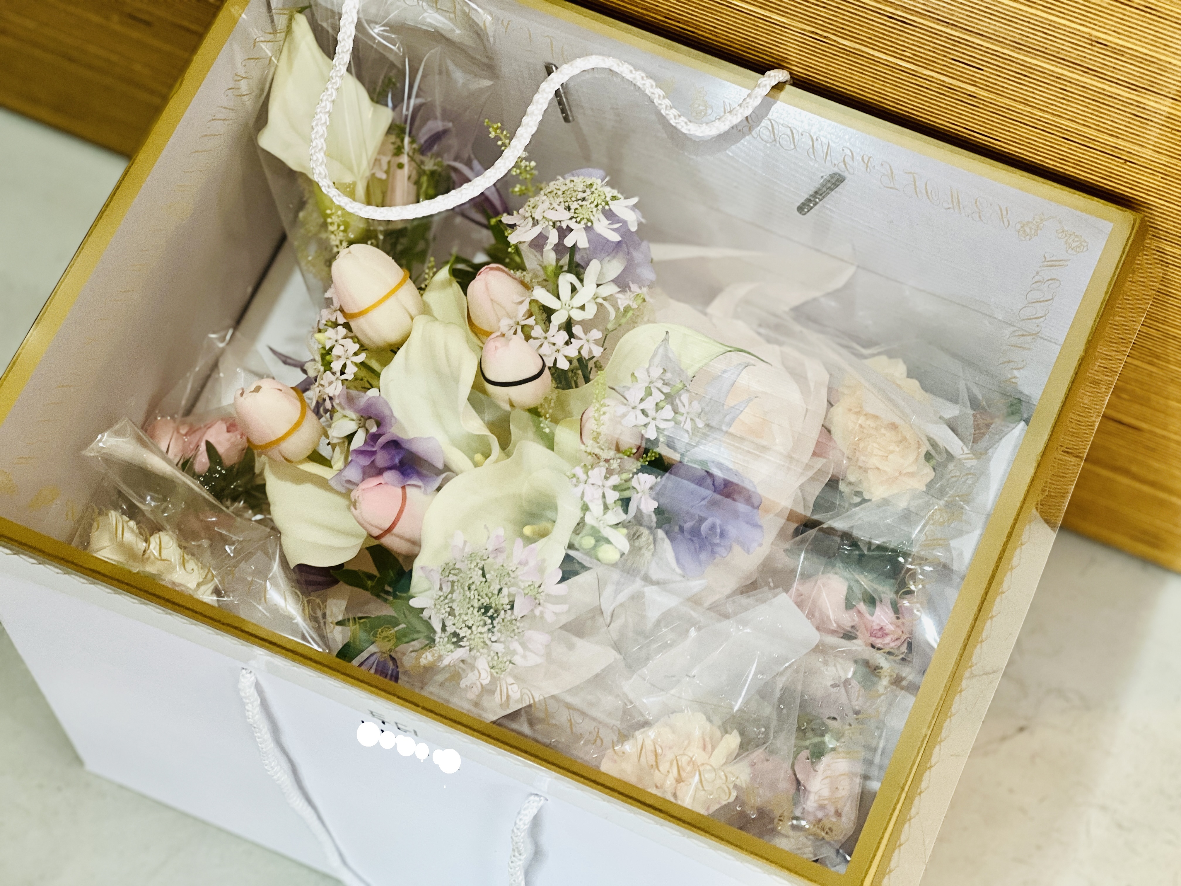 폐백을 진행하지 않기로 해서 한복을 사지 않으려 했는데요. 신부 형제들의 결혼식이 줄지어 있는 등 한복 입을 일이 많다고 하여 추가로 신랑 신부 한복을 맞추게 되었습니다. 각각 70씩 해서 140만 원이 소요되었어요. 부케는 별도로 주문했습니다. 15만 원입니다.