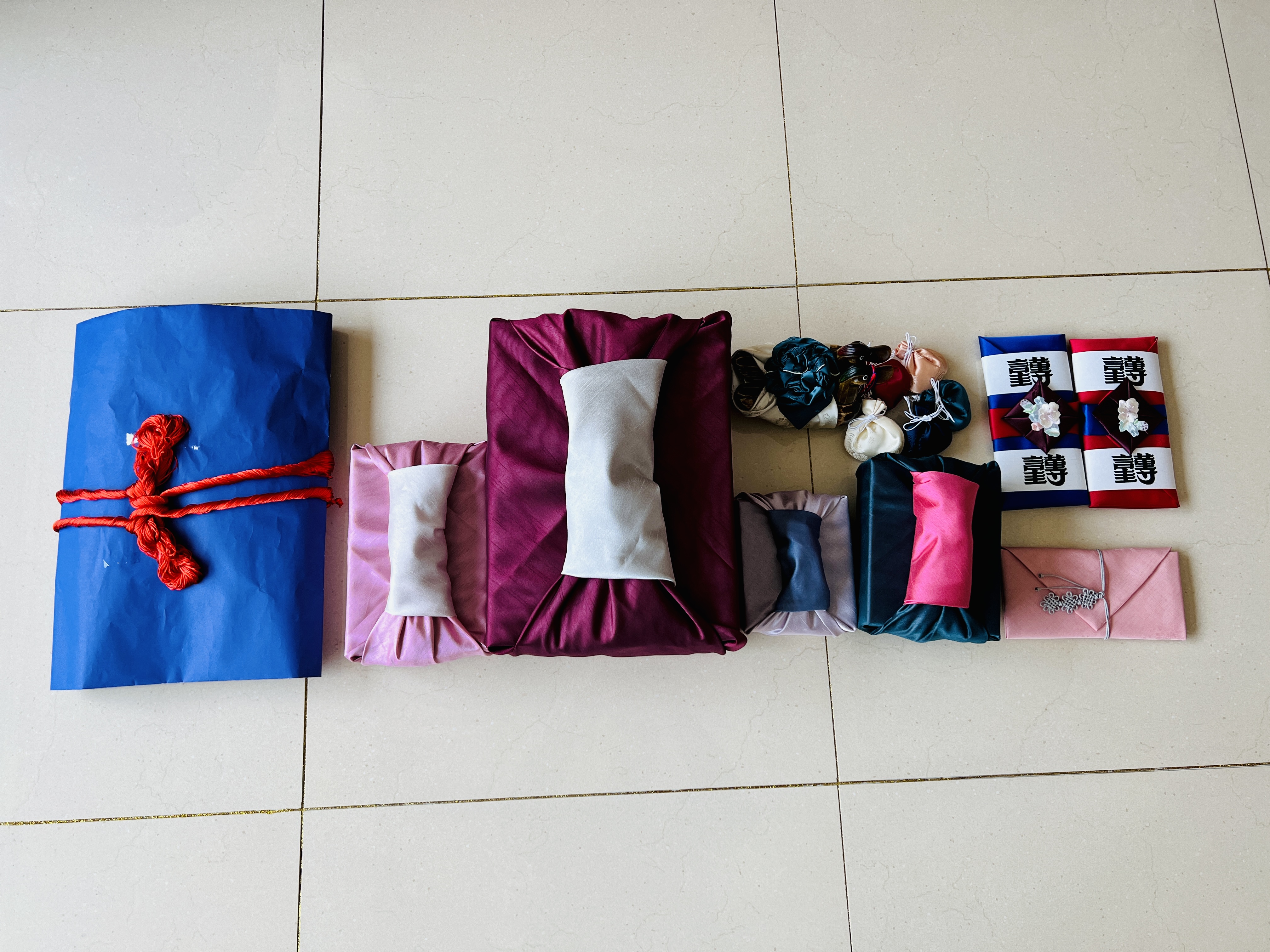 신랑 측에서 신부 측에 보낸 함입니다. 한정된 금액 안에서 신부의 선택이었는데요. 예물을 조금 줄이고 명품 가방과 지갑을 구입했습니다. 예물은 신부의 친척 동생 경험담을 기준으로 종로 G1다이아몬드를 방문해서 준비했습니다. 신랑 반지를 제외하여 예물 320만 원, 가방과 지갑이 대략 680만 원 소요되었습니다. 양가 어머니 한복 비용을 신랑 측에서 부담했으며 일백만 원이 소요되었어요. 총 일천일백만 원이 소요되었습니다.